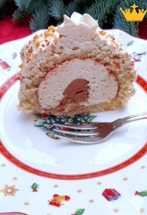 Bûche aux noisettes & ganache, touche d’airelles